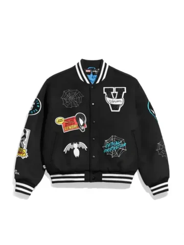 Make a statement with this black patch varsity jacket, designed with bold graphic detailing and classic letterman styling. Crafted for comfort and durability, this jacket blends streetwear attitude with a timeless varsity silhouette.