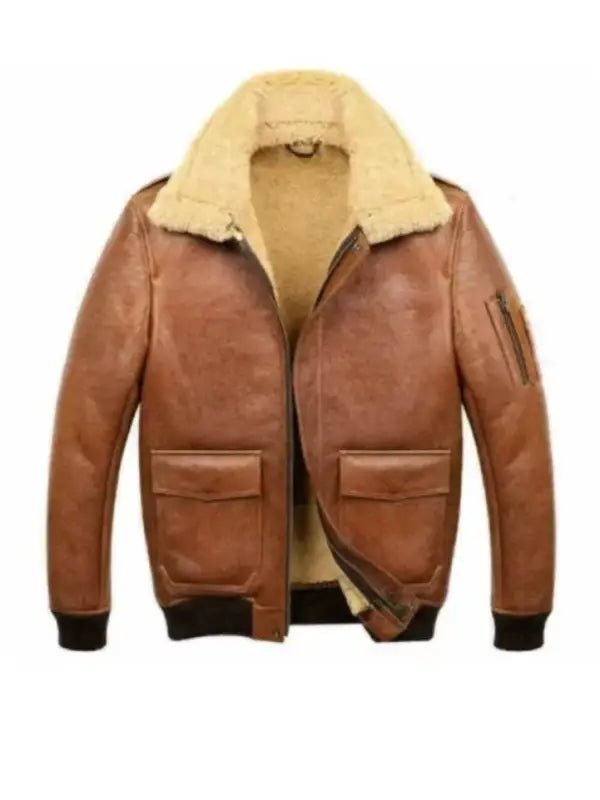 Mens A6 Flight Shearling Brown Leather Bomber Jacket – Re-Created