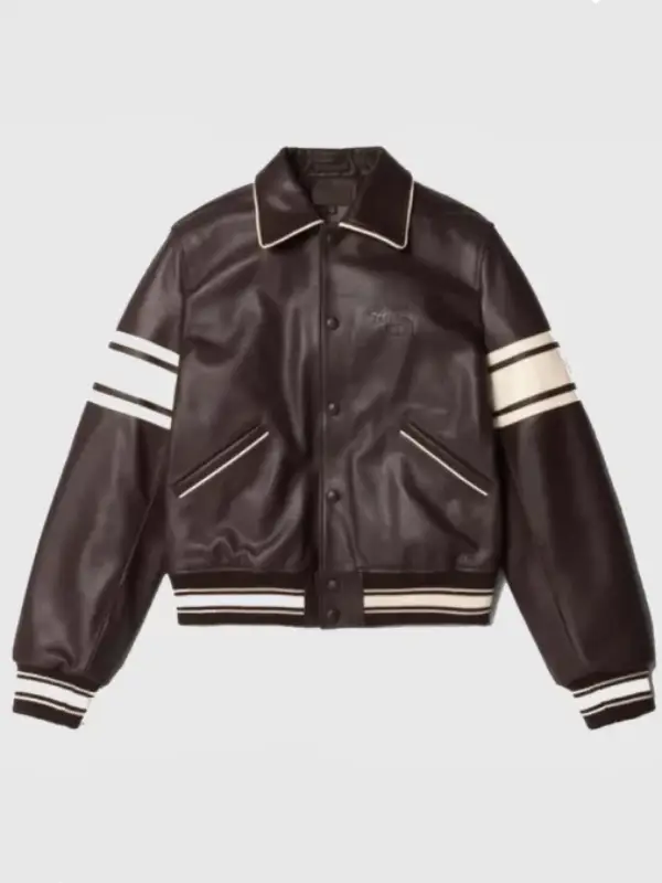 Stussy Wales Bonner Brown Leather Varsity Jacket