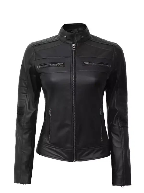 women s black cafe racer leather jacket.jpgWomen’s Black Café Racer Leather Jacket